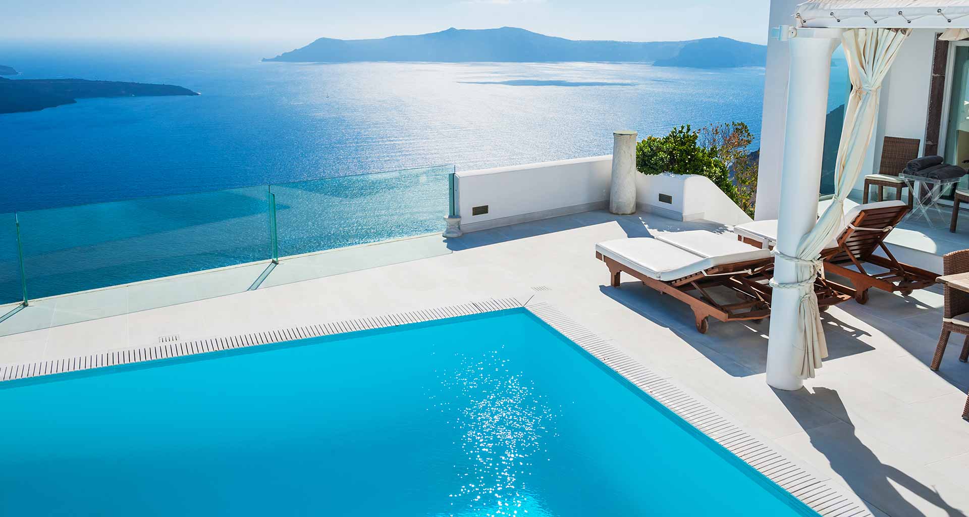 Located 10 minutes walking distance from the excavations of ancient Akrotiri and 150 meters from the nearest beach, Neptune Luxury Spa Suites is a new built complex offering uninterrupted views of the Volcano, Caldera and Aegean Sea.